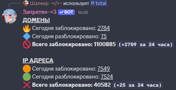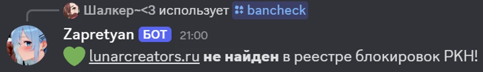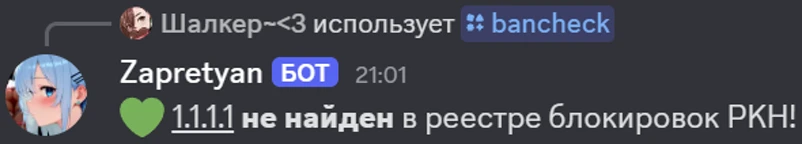 Публичный Discord бот доступный каждому позволяет проверять блокировки с помощью slash-команд